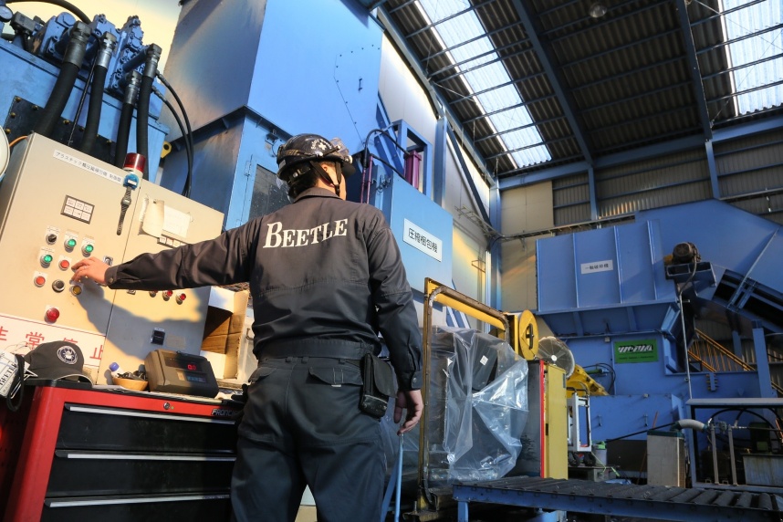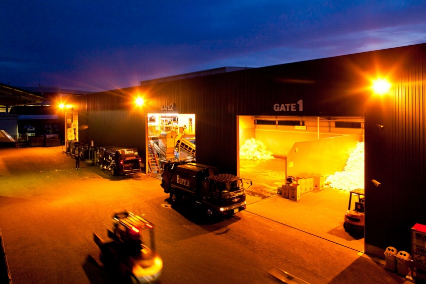 福岡支店(箱崎工場) びん・缶・ペットボトル及びCPFリサイクルの施設 2011年 工場設立 弊社リサイクル工場の中で最大の敷地面積を誇ります。 第7工場と同様の選別ラインを導入しており、成形したCPF(代替燃料)はセメント工場へ月間450トン出荷しております。