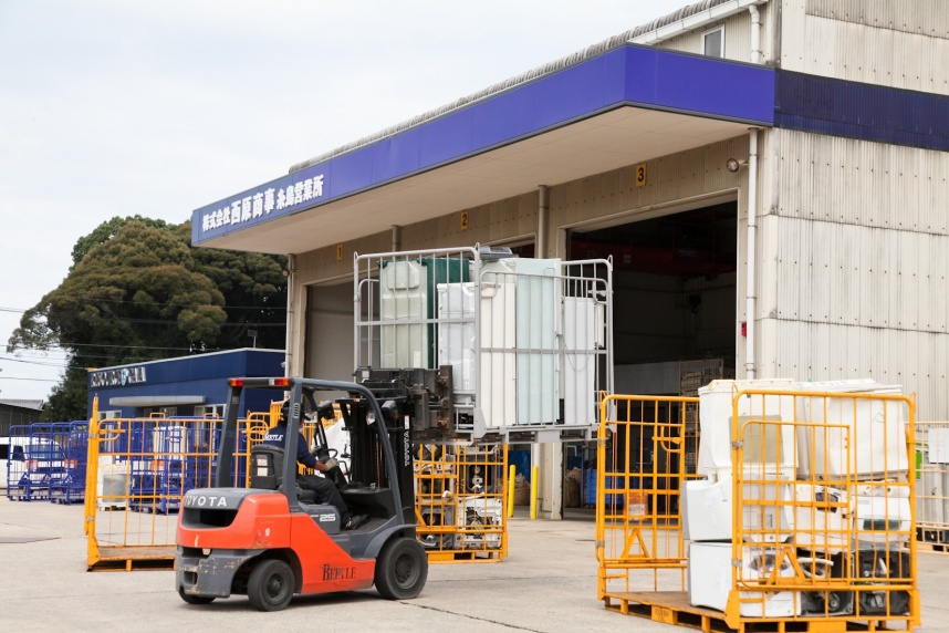 福岡西営業所 リサイクル家電の指定引取場所 2010年 工場新設 九州で最大級の取り扱い実績を誇ります。 2001年4月1日より本格施行された家電リサイクル法に伴って、Aグループの指定引取場所(SY)として、年間25万台の運搬を行っております。