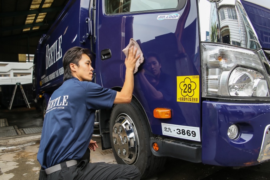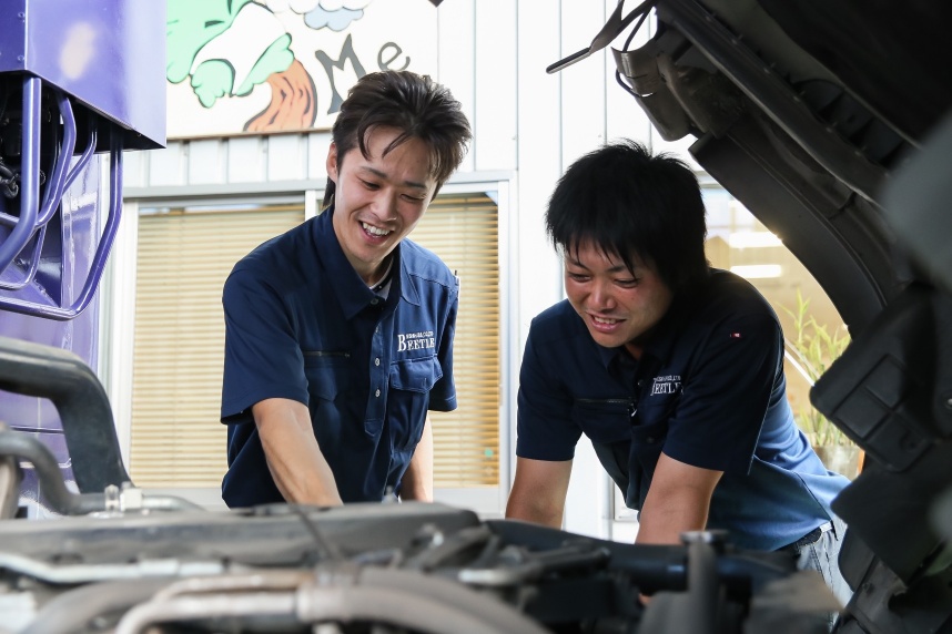 現在は、車両管理担当として、整備などの業務を行っています。もともと車関係の仕事をしていたこともあり、自分の特技を活かせていることを実感しています。