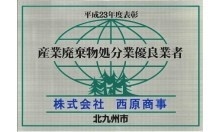 「平成23年度 北九州市産業廃棄物処分業優良事業者」として表彰頂きました。